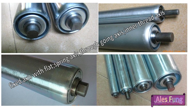 1.throgh going axis (means the axis could be pulled out of roller freely,which could also be devided into hollow axis and solid axis;fixed frame with steel pin,easy to install)